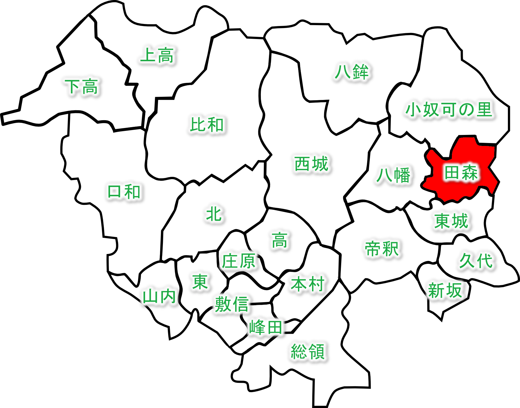 田森自治振興区の場所を示す地図です。