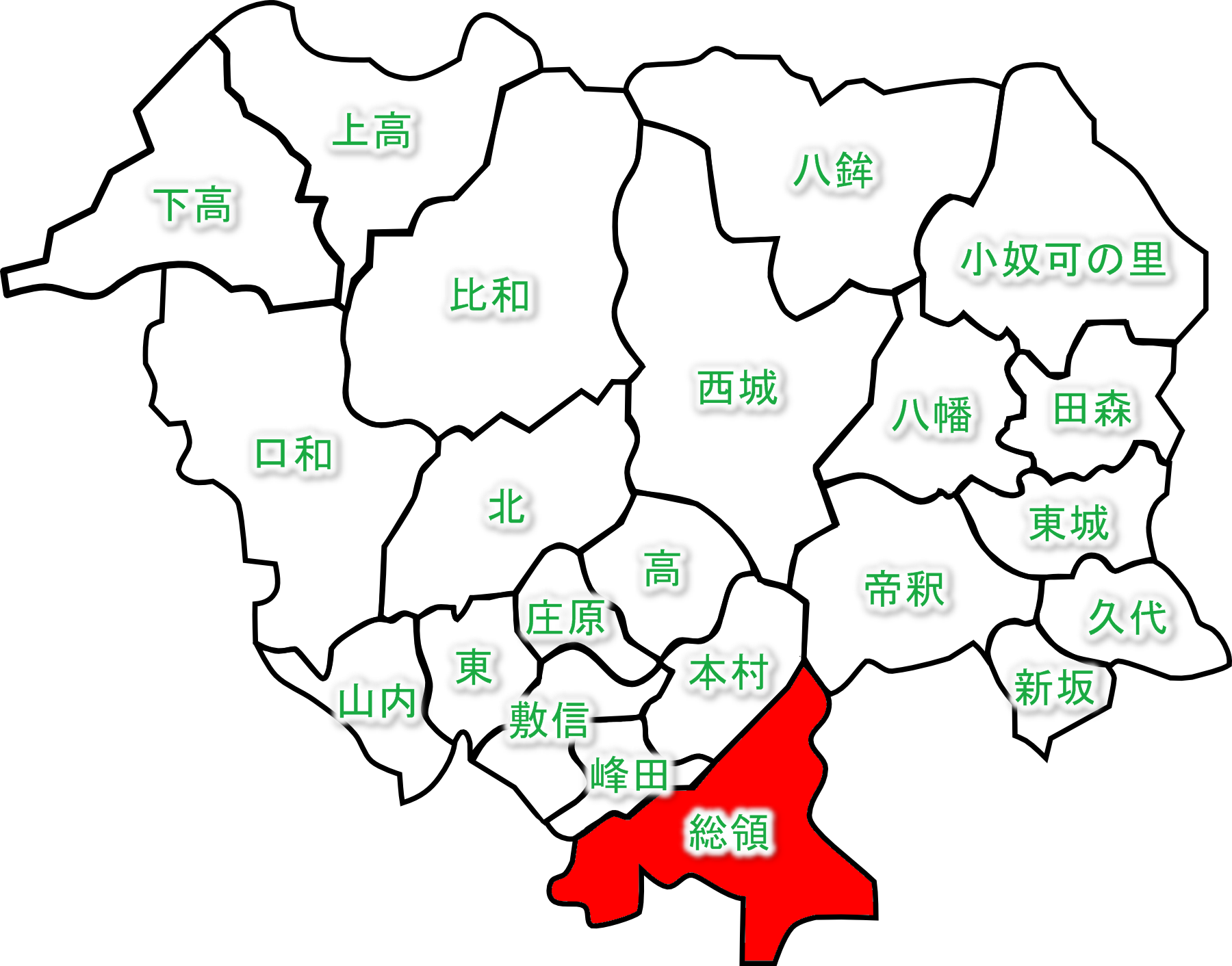 総領自治振興区の場所を示す地図です。