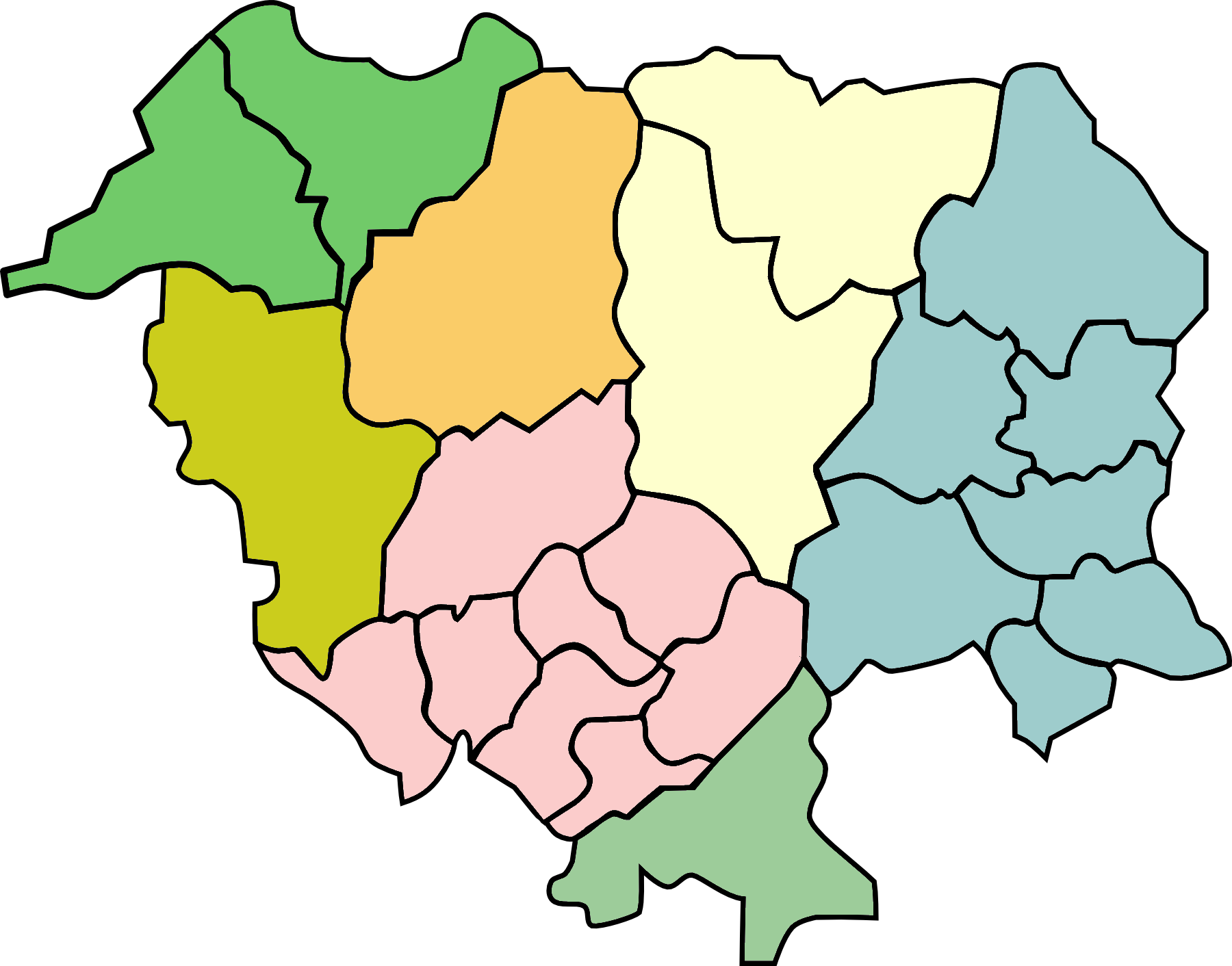 庄原市自治振興区のカラー地図(地区名なし)です。
