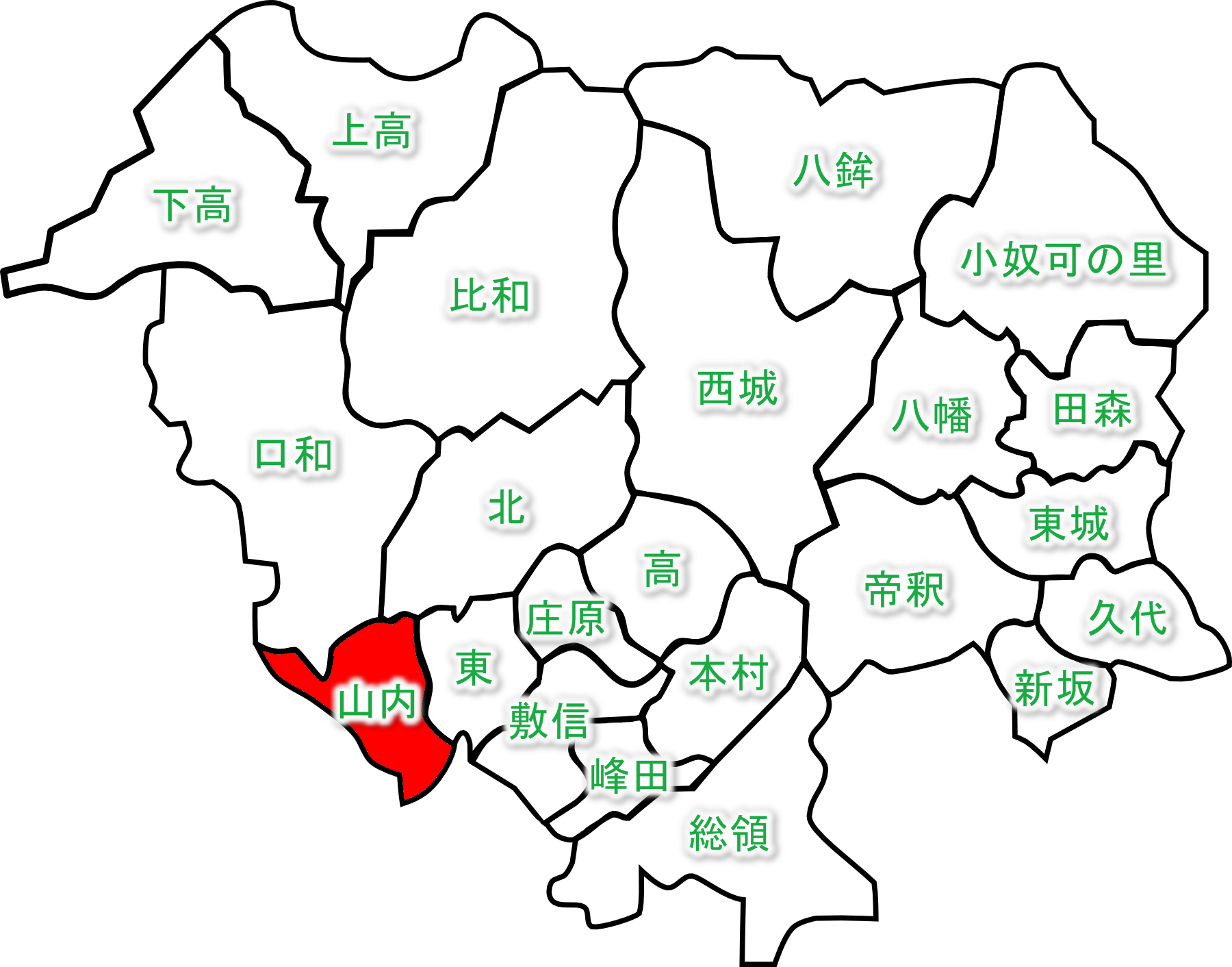 山内自治振興区の場所を示す地図です。