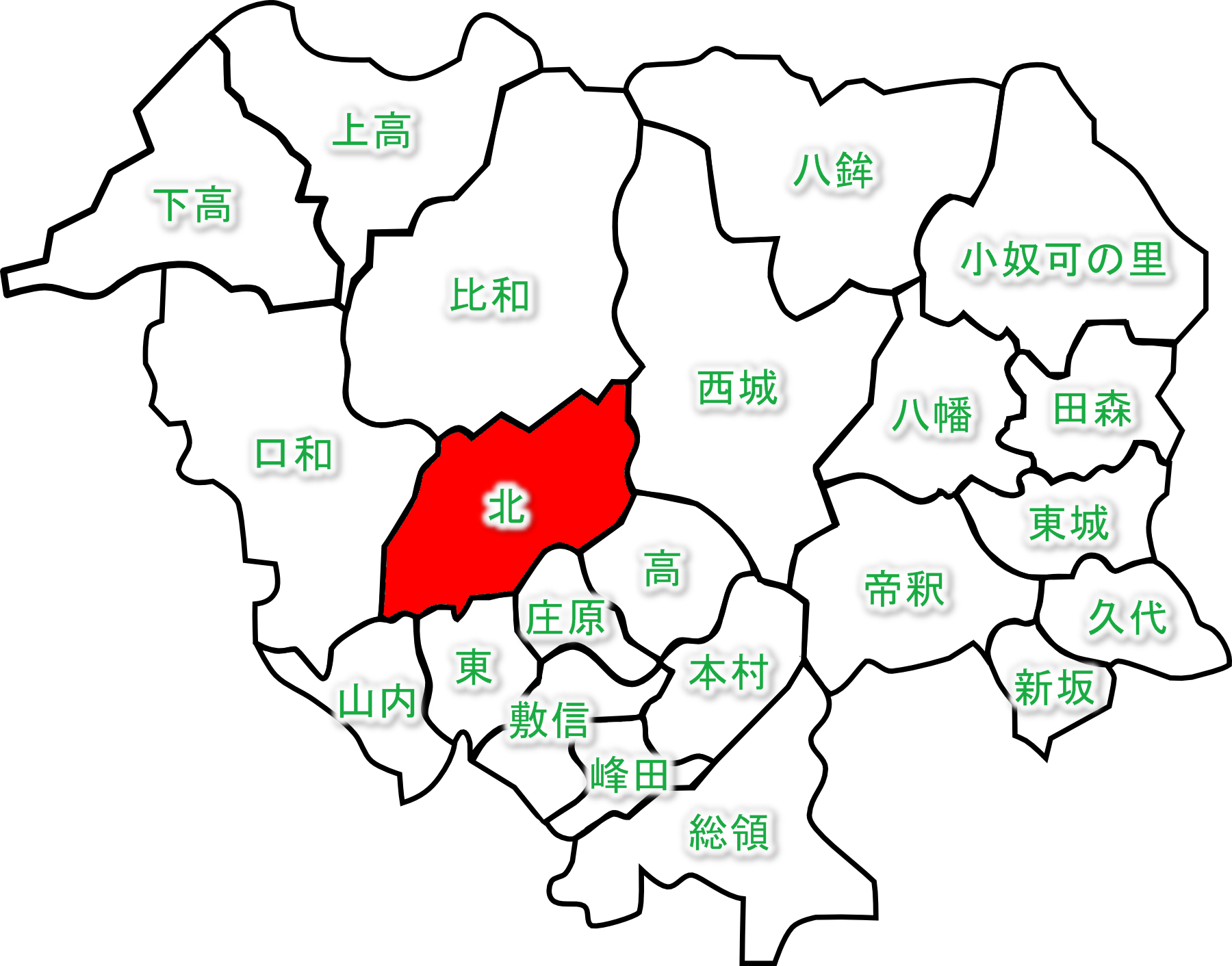 北自治振興区の場所を示す地図です。