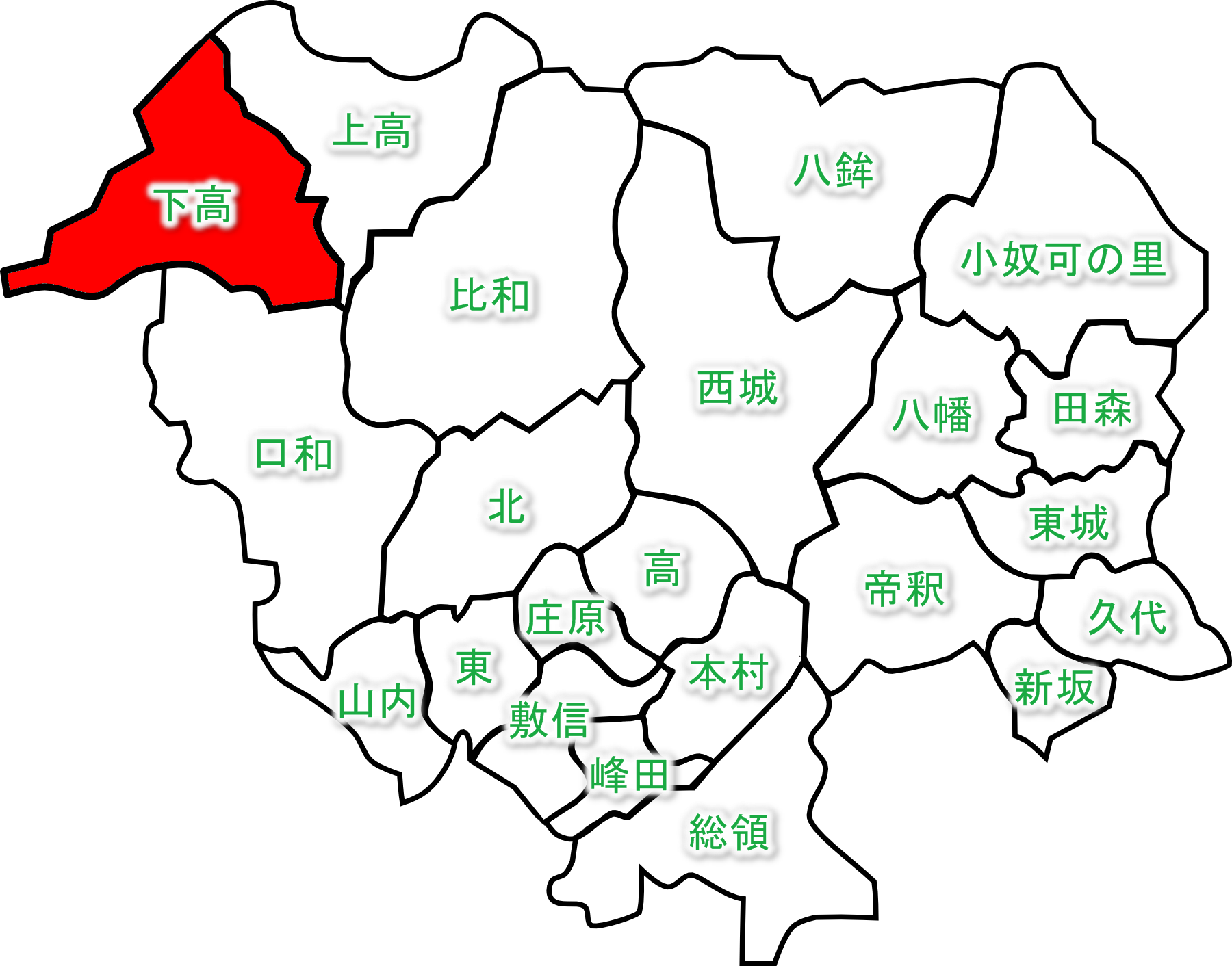 下高自治振興区の場所を示す地図です。